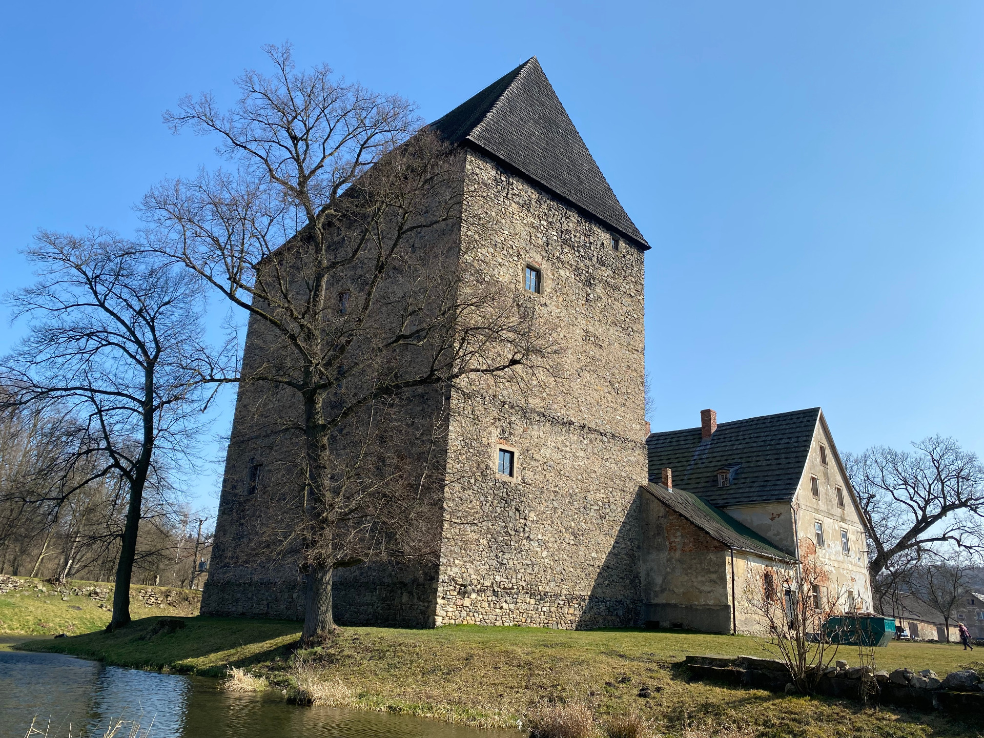 Vodní tvrz zdobená gotickými freskami.